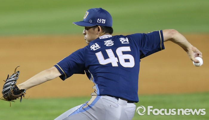 (서울=포커스뉴스) 11일 서울 잠실구장에서 열린 2016 프로야구 NC-LG 경기 6회말 NC 투수 원종현이 등판해 투구하고 있다.