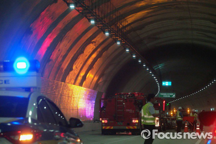 11일 오후 6시 10분쯤 서울 서초구 강남순환도로 사당 IC 방면 서초터널에서 주행 중이던 승용차에 화재사고가 발생 차량운행이 한때 중단되고 있다. 운전자 안모씨와 동승자 김모씨가 승용차를 정차시키지 못한 채 뛰어내렸고, 곧바로 병원에 이송됐다. <사진제공=김건수사진가>