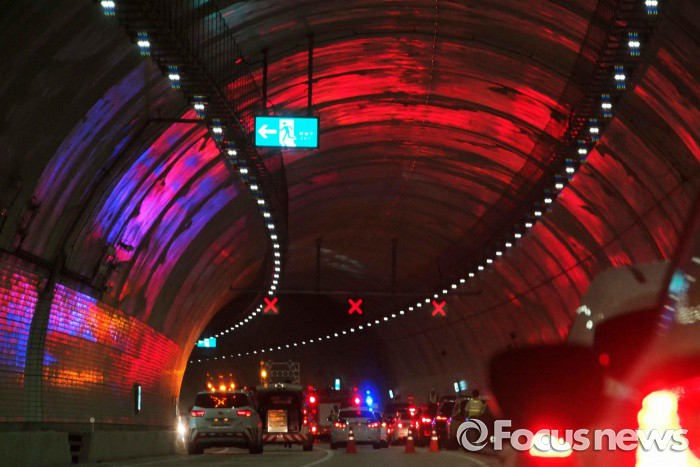 11일 오후 6시 10분쯤 서울 서초구 강남순환도로 사당 IC 방면 서초터널에서 주행 중이던 승용차에 화재사고가 발생 차량운행이 한때 중단되고 있다. 운전자 안모씨와 동승자 김모씨가 승용차를 정차시키지 못한 채 뛰어내렸고, 곧바로 병원에 이송됐다. <사진제공=김건수사진가>