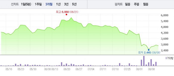 이씨는 지난 2014년 10월부터 올해 4월까지 허위 공시를 통해 보타바이오 주가를 부풀린 혐의를 받고 있다. 이후 이씨는 주식을 매각해 40억원을 챙긴 것으로 알려졌다.주가흐름<사진출처=네이버 캡쳐>