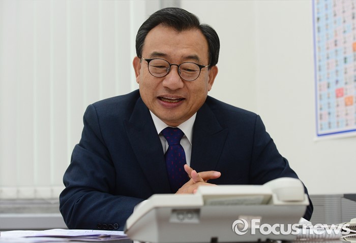(서울=포커스뉴스) 이정현 새누리당 대표가 12일 오전 서울 여의도 국회 당대표실에서 정몽규 리우올림픽 선수단장과 격려 통화를 하고 있다.