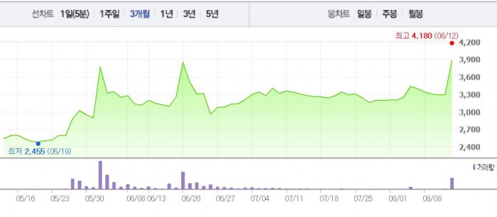 선도전기는 12일 오전 9시35분 현재 전 거래일 대비 17.91%(590원) 상승한 3885원에 거래되고 있다.